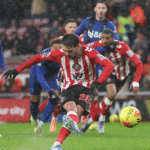 Sunderland 3 Bournemouth 2 ( 1-2 )Premier LeagueSunderland Stadium of LightTilskuere:46973Mål Le Fee (30.min.), Traore (46.min), Brobbey (69.min), Sunderland:RoefsMukuele, Ballard ,Alderete, Reinildo, Talbi ( Hume,63.min.) ,Xhaka, Sadiki, Le Fee (Geertruida,87.min.)Traore (Mundle 63.min.),Isidor,( Brobbey,63.min.) Reserver ikke benyttet: Patterson,Neil, Rigg,O’Nien, … (Les mer...) omSOM Å STÅ OPP FRA DE DØDE