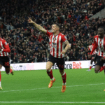 Sunderland 1 Everton 1 ( 0-1 )Premier LeagueSunderland Stadium of LightTilskuere:46,454Mål Xhaka 46.min., Sunderland:RoefsHume, Mukuele, Ballard , Reinildo,Geertruida,Xhaka, Sadiki, Le Fee,Traore (Talbi 82.min.),Isidor( Brobbey,82.min.) Reserver ikke benyttet: Patterson,Masuaku, Adingra , Neil, Mayenda, Rigg, AldereteJordan Pickfords første kamp mot favorittklubben … (Les mer...) omMISFORNØYD MED POENGDELING